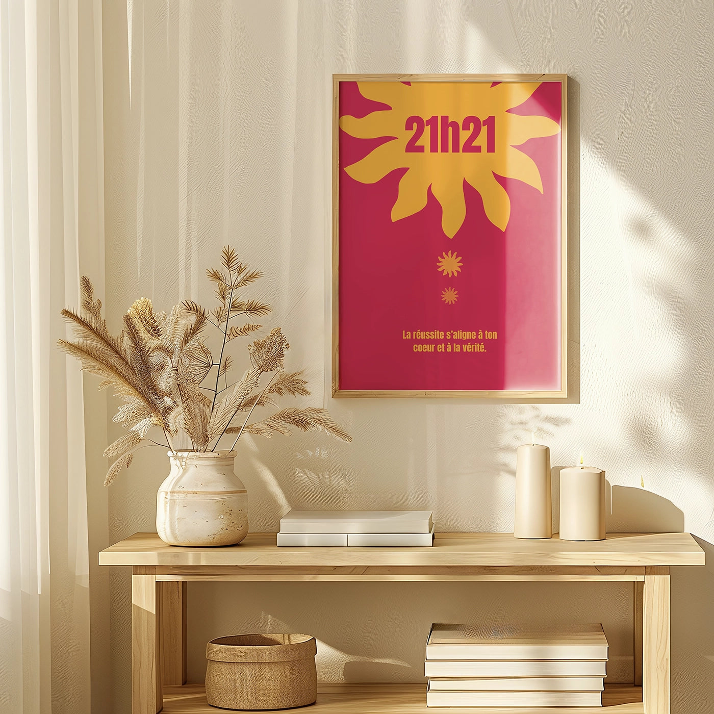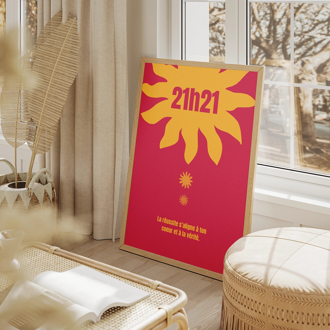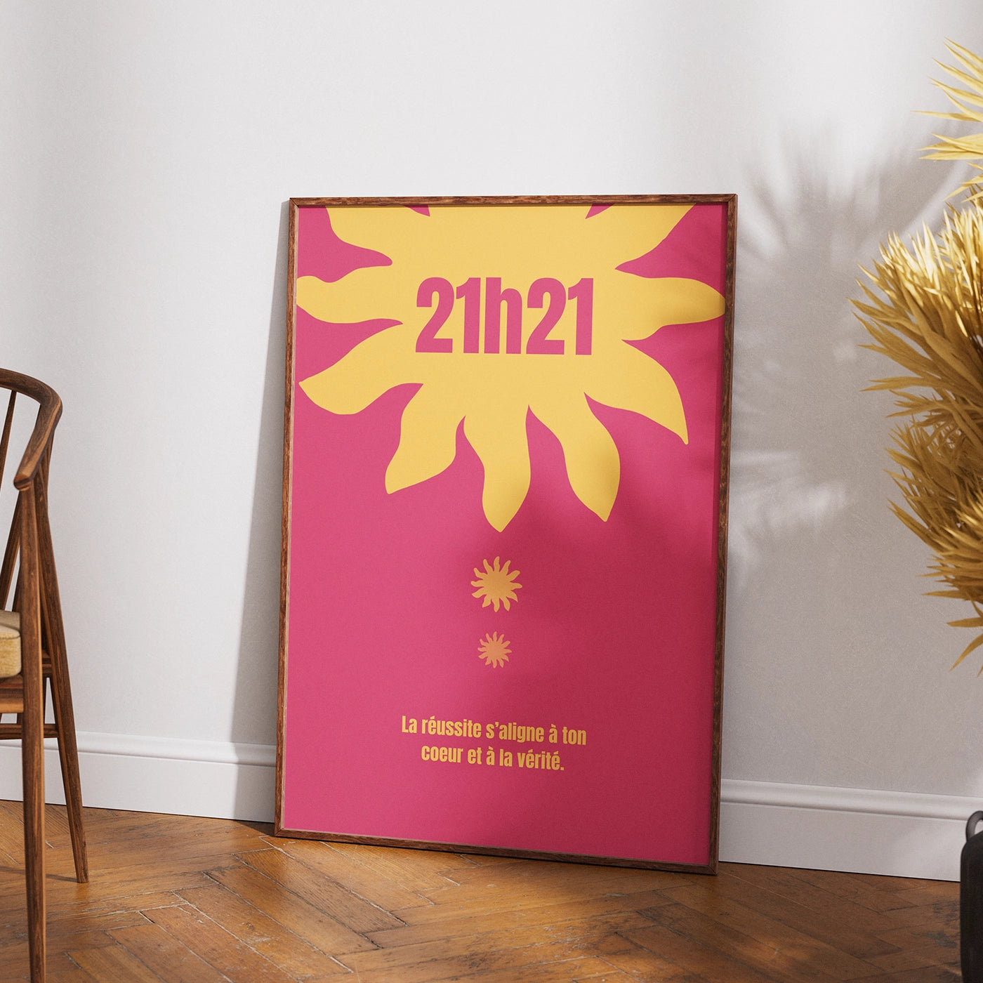 Fais de ta chambre, de ton salon, de ton bureau ou même de ton coin méditation/yoga un lieu rempli d'énergies positives grâce à cette affiche sur l'heure miroir 21h21.