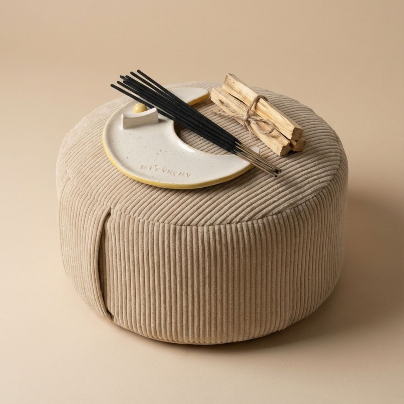 Crée une bulle de calme chez toi avec le Duo méditation, une combinaison pensée pour installer une routine douce et apaisée. Le zafu offre une assise confortable et stable pour la méditation, tandis que le porte-encens crée une atmosphère sereine et propice au recentrage.